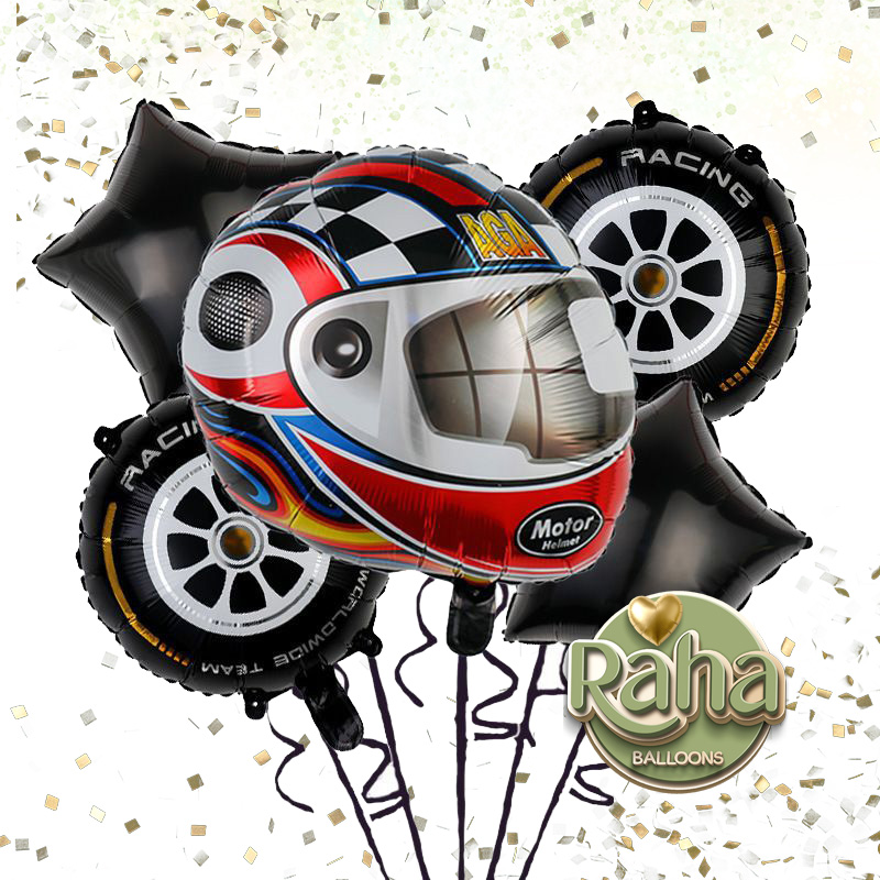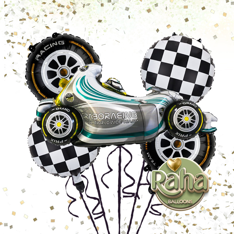 بادکنک فویلی مدل لاستیک ماشین خط طلایی کد 1308