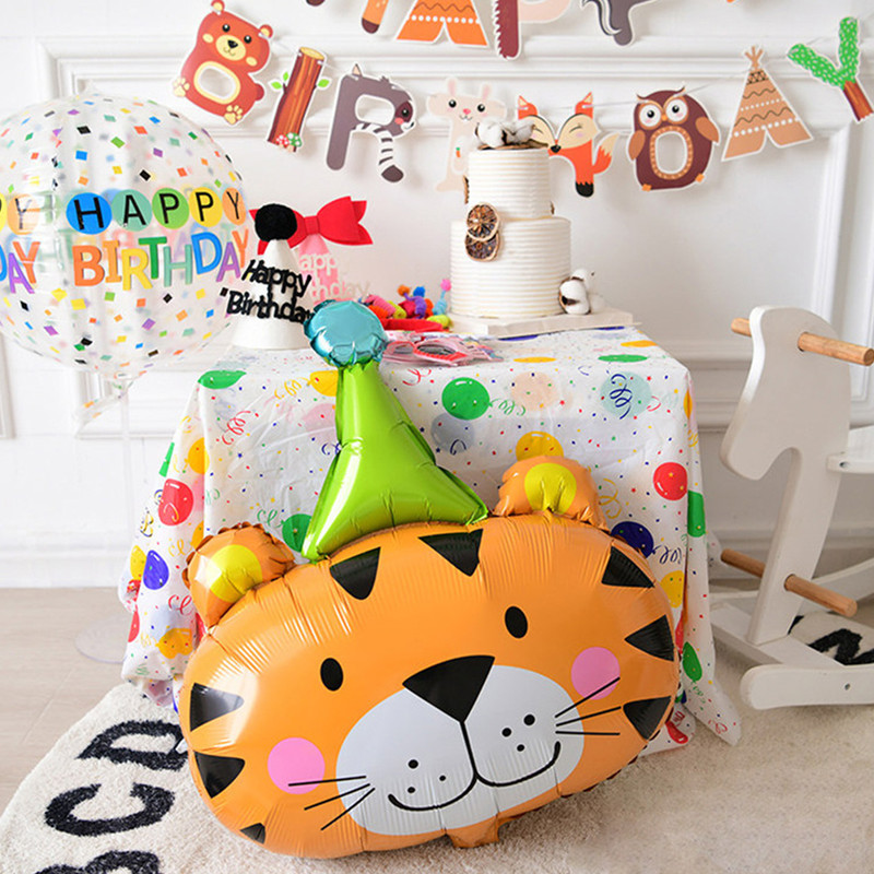 بادکنک فویلی ببر کلاه دار طرح تولد کد 1210