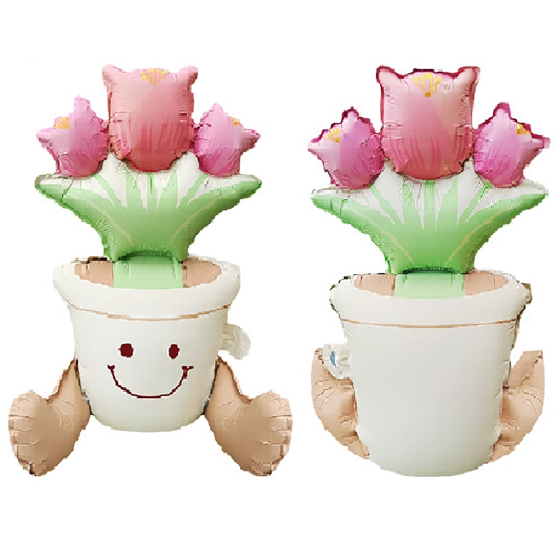 بادکنک فویلی گلدان گل لاله 3 بعدی کد 1535